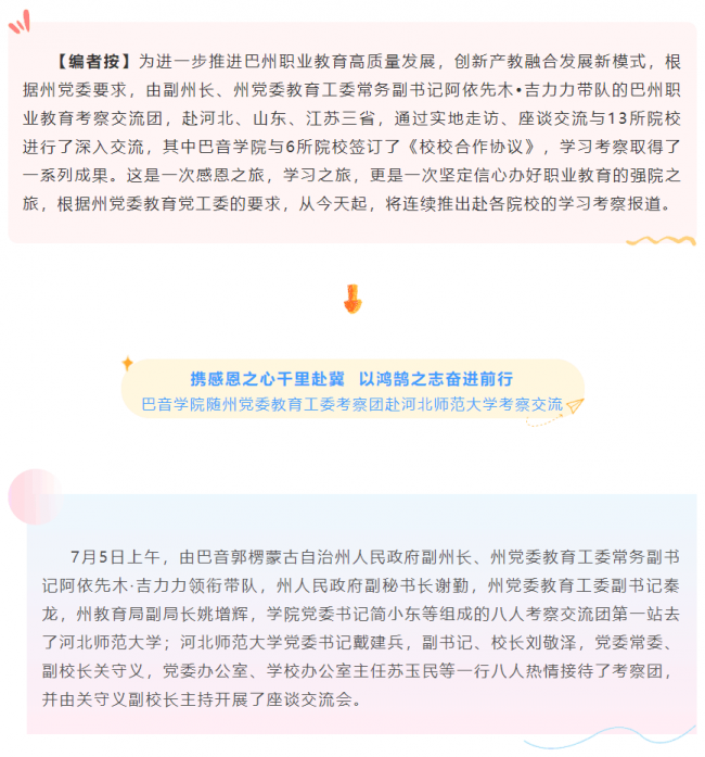 下一条: “筑梦职教路 扬帆再起航”巴音学院深化校校合作之路系列报道(二)