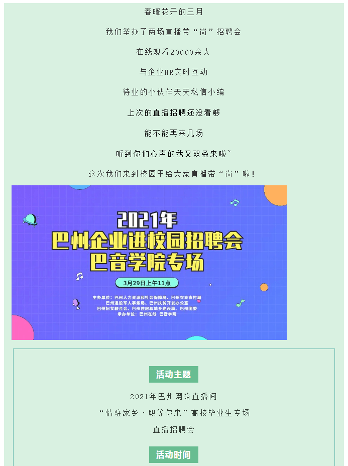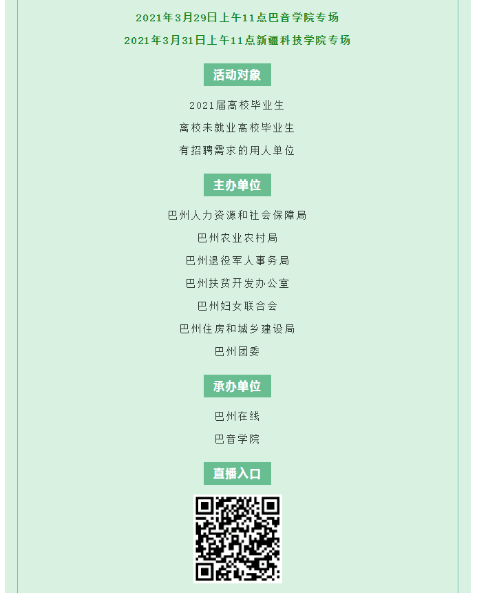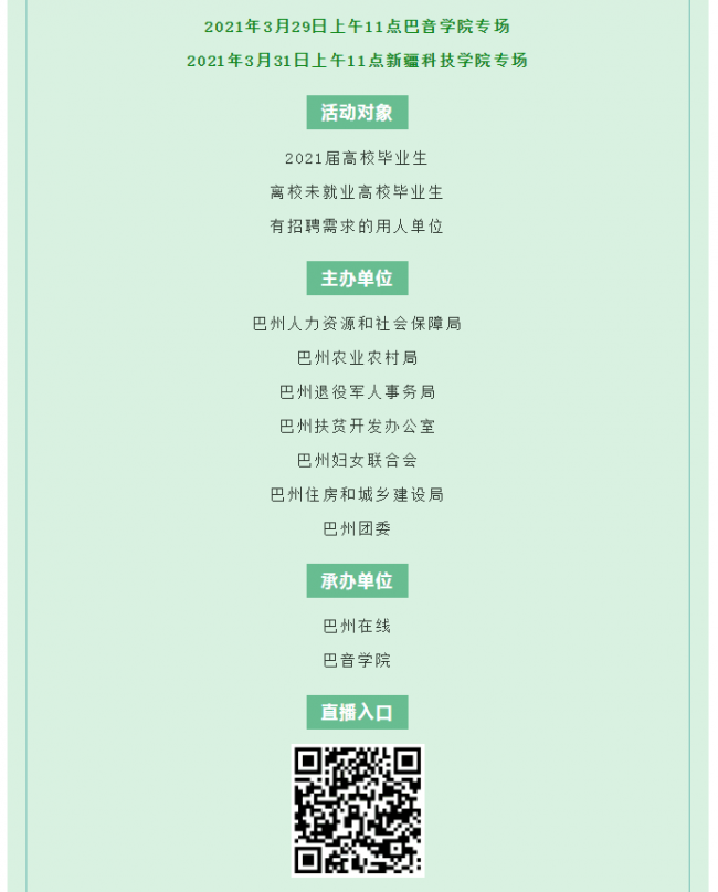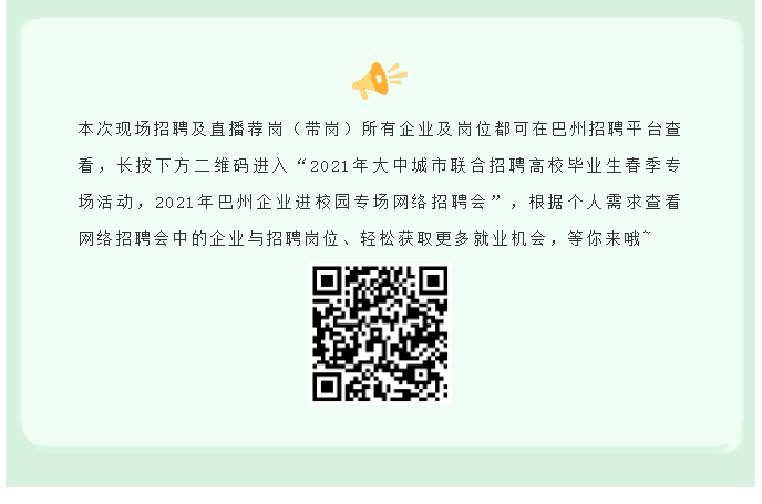 下一条: 明天上午11点!2021年巴州企业进校园直播招聘会即将开启!“职”等你来~
