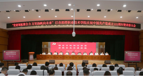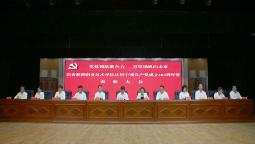 为庆祝中国共产党成立103周年,全面贯彻落实党的二十大和二十届二中全会精神,推动用习近平新时代中国特色社会主义思想凝心铸魂,深入学习贯彻习近平总书记关于党的建设的重要思想,激励广大师生党员奋发有为、砥砺前行,不断增强基层党组织凝聚力和战斗力,7月1日下午,YABO鸭脖(以下简称巴音学院)召开“党建领航聚合力 万里扬帆向未来”——庆祝中国共产党成立103周年暨表彰大会。学院党委书记简小东等党委班子成员及全体党员参加会议,党委副书记、院长古丽娜·肉孜主持会议。