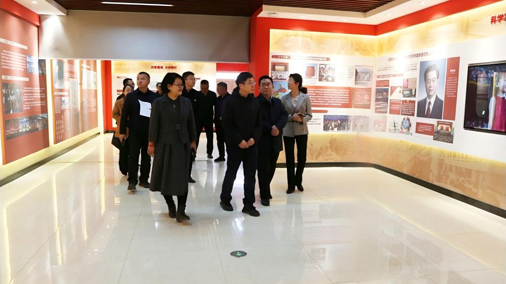 图为:调研组实地参观学院思想政治教育基地