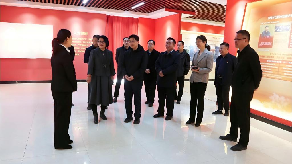 学院党委书记李冬玲介绍了学院在贯彻落实《党史学习教育工作条例》方面的具体举措和成效,并引导调研组实地参观了学院的思想政治教育基地,全面展示了学院开展党史学习教育的情况和特色亮点。