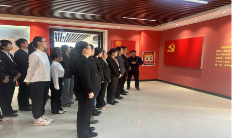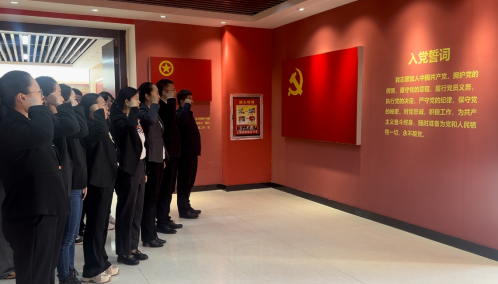 在学院四史馆,学院党委书记简小东同志带领全体党员入党宣誓,党员们面向党旗举起右手,用铿锵有力的宣誓表达了坚守初心、踔厉奋发、笃学不怠的坚定信念,以及为党的事业奋斗终身的决心和愿望。