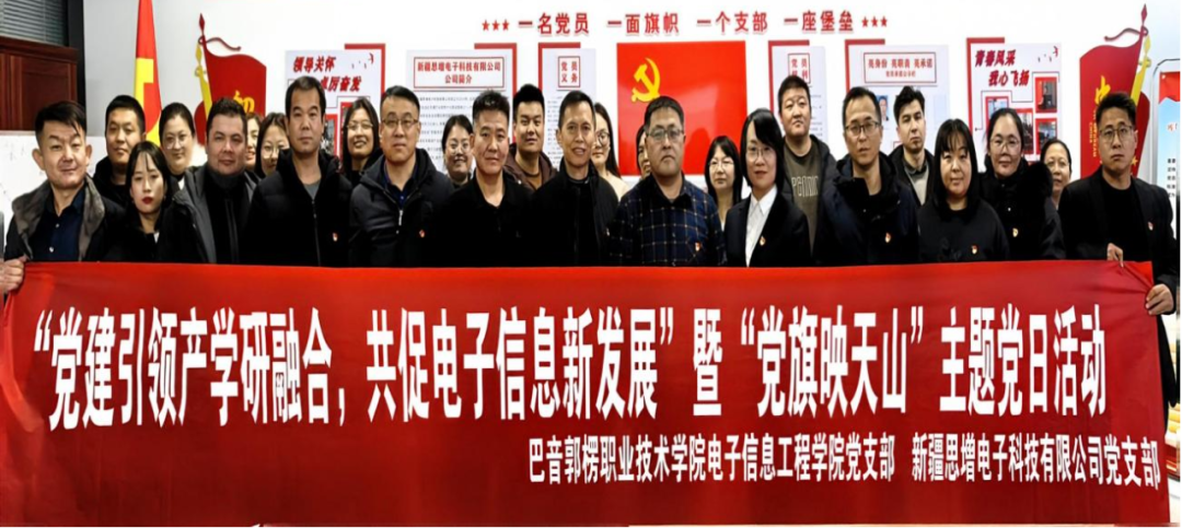 本次活动聚焦党建与产学研深度融合,致力于发挥党组织引领作用,推动电子信息领域科技研发、人才培养和产业升级,实现高校与企业资源共享、优势互补。活动期间,双方共同为“电子信息工程学院党支部与新疆思增电子科技有限公司党支部活动室”揭牌,标志着双方合作进入新阶段,为后续产学研协同创新筑牢根基。
