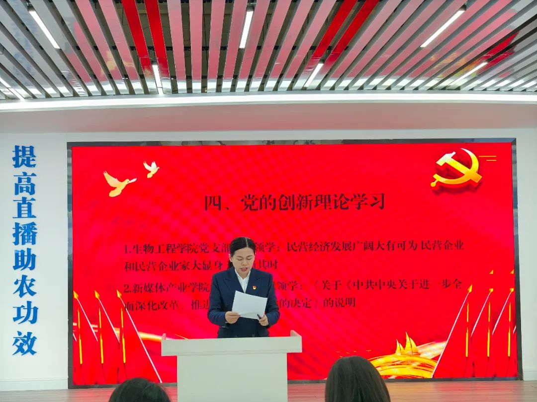 图为:新媒体产业学院党支部副书记孟轩羽领学文件