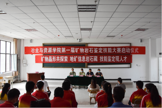 2020年7月21日11点,在明钰楼401开展了冶金与资源学院“第一届矿物岩石鉴定技能大赛启动仪式”。冶金与资源学院全体在校教师、19高职地质1和2班和17-18-19五年一贯学生及教务处王玥老师参与本次启动仪式。