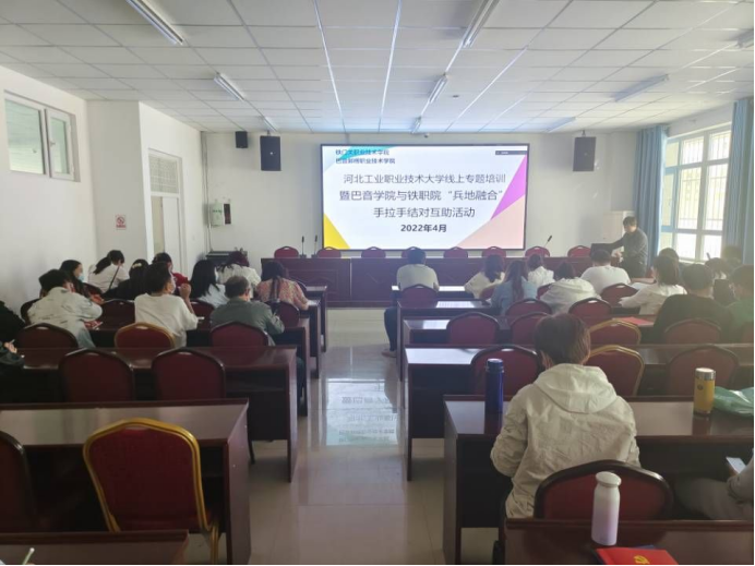2022年4月27日16:00-17:30,由河北工业职业技术大学计算机系主任于丽娜教授主讲的教学能力比赛和课程思政专题讲座在腾讯会议开讲了,学院全体专任教师集中在事务大厅三楼会场参加了培训,同时我院邀请了手牵手共建单位铁门关职业技术学院教师一同聆听培训。培训由河北工业职业技术大学成人教育部部长李小红主持,学院党委委员、纪检书记魏广华同志总结讲话。