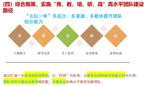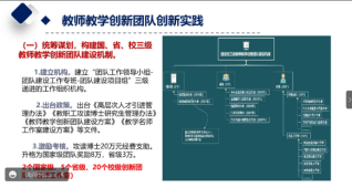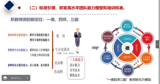 并通过思维导图、表格、具体案例等形式,生动而又直观地向我们展示了浙江经济职院在构建国、省、校三级教师教学创新团队建设机制、发高水平团队能力模型和培训标准、建立全天候双职双岗教师能力提升机制、实施“育、教、培、研、战”高水平团队建设路径等方面的具体做法和取得的成效。