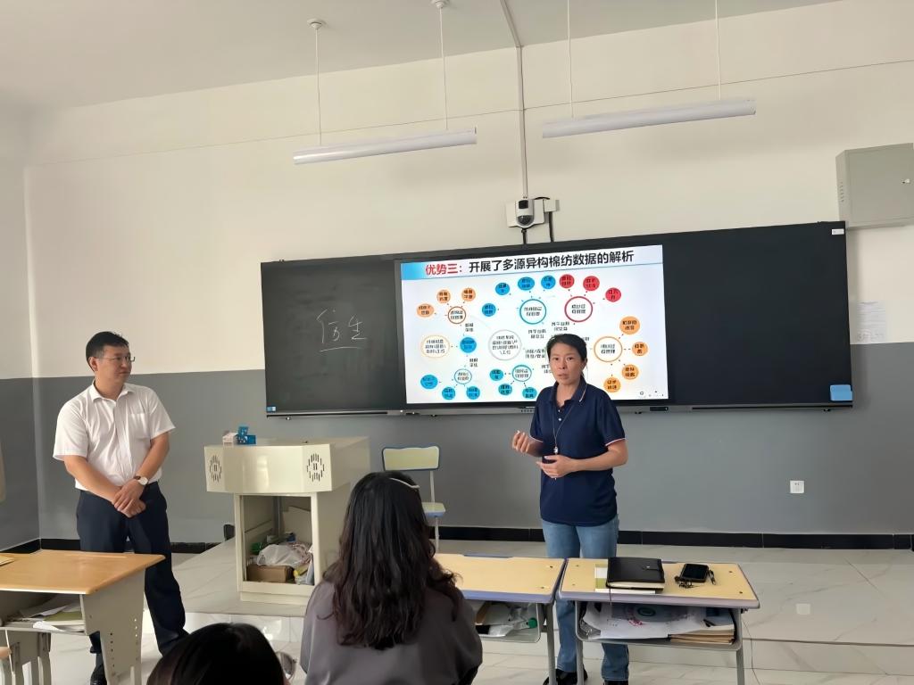 此次讲座旨在通过党建引领,推动学院科研创新,助力新疆纺织服装行业新质生产力的发展。张静主持讲座时表示,此次讲座不仅是对学院师生的一次宝贵学习机会,更是推动学院纺织智能制造技术发展、提升教育教学质量的重要契机。王庆就本次讲座内容对教师们下一步科研平台建设任务提出要求。希望全体教师抓住此次学习机会,寻找科研方向,突破科研难关,争取在科研方面取得好成绩。