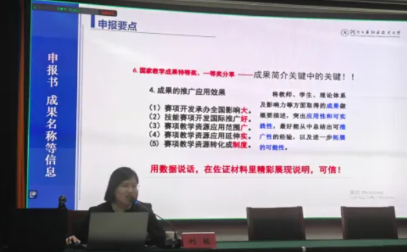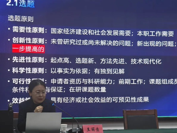 培训在刘毅的《教学成果奖培育、总结、凝练、申报》的专题讲座中拉开序幕,刘娟音、王丽佳先后以《以赛促教共成长 以赛促学践初心——教学能力比赛》《AI赋能科研课题申报》为主题作专题讲座。