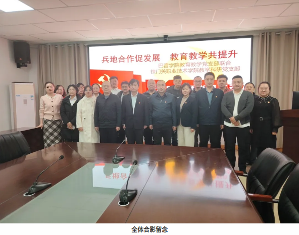 活动当日,巴音学院党委委员、副院长李宏,党委委员、教务处处长祝建章及教育教学党支部全体成员,与铁门关职业技术学院教务处处长、教务科研党支部书记王鹏鹏,科研处处长邓斌及教育科研党支部全员齐聚巴音学院。