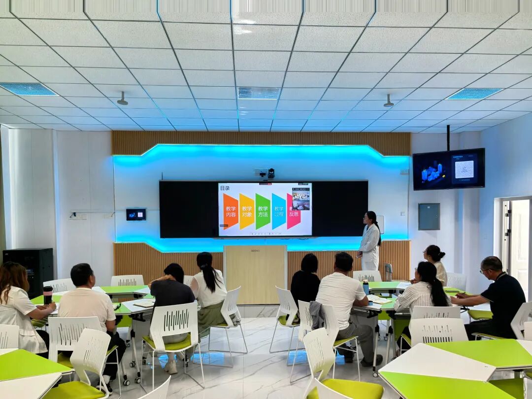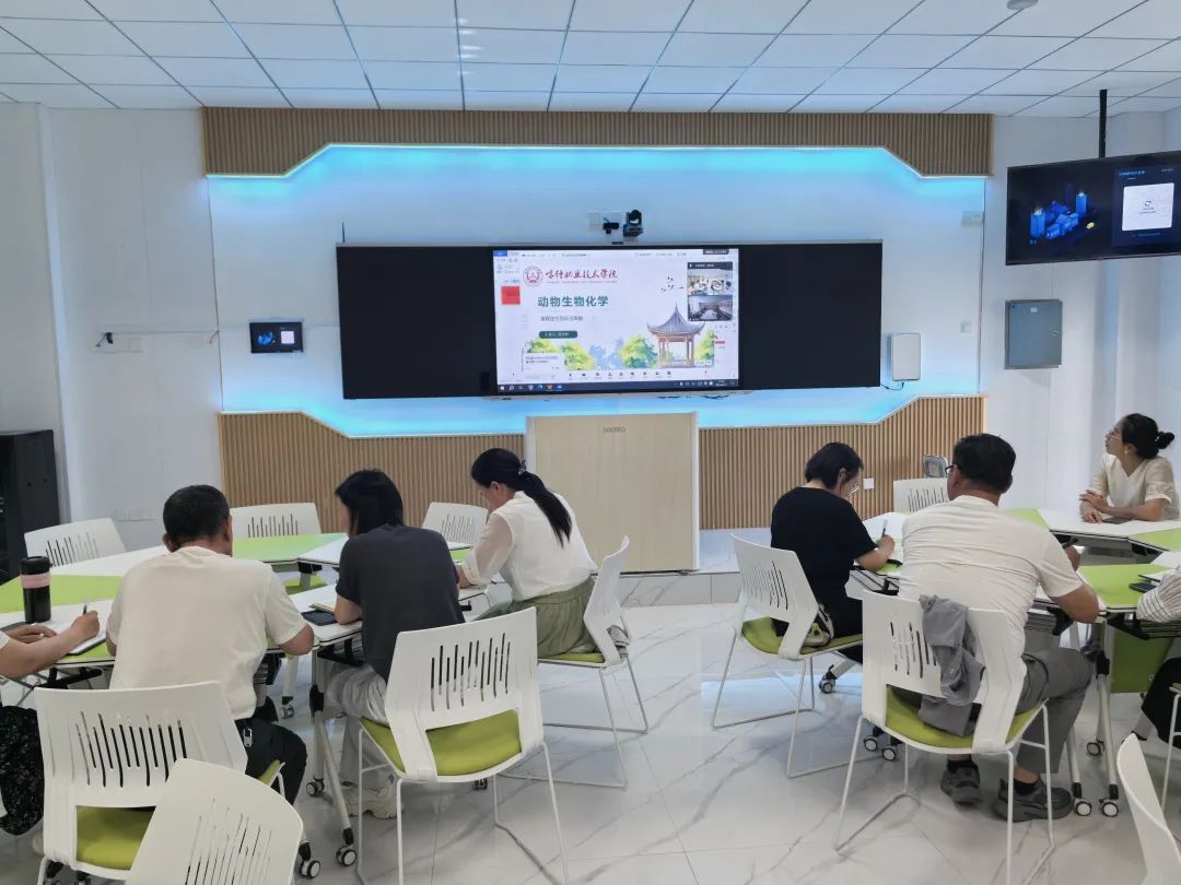 喀什职业技术学院现代农学院党总支书记何建荣致辞,随后,喀什职业技术学院现代农学院畜牧兽医教研室主任赵天枝以《牛羊生产》为题展开说课,聚焦现代化、标准化养殖管理技术,结合喀什地区牛羊产业发展需求,系统阐述了如何培养学生掌握关键生产环节的操作规范与问题解决能力;畜牧兽医教研室教师唐开婷则深入解析了《动物生物化学》课程的教学设计,强调将抽象的代谢原理与动物生理及健康实践紧密联系,通过典型案例帮助学生理解生命活动的分子基础,筑牢专业理论根基。