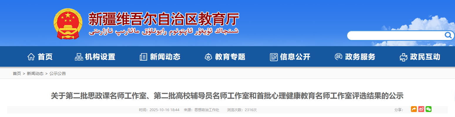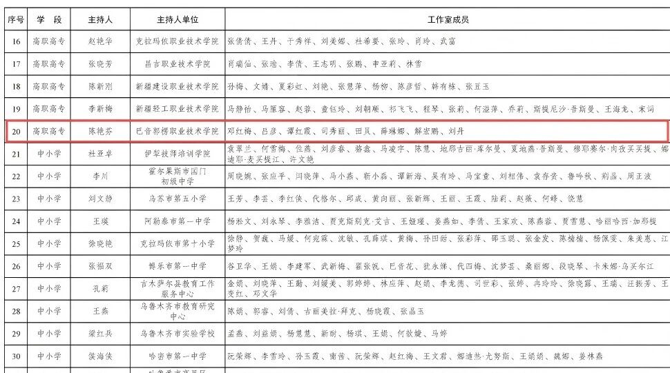 近日,自治区教育厅下发了《关于第二批思政课名师工作室、第二批高校辅导员名师工作室和首批心理健康教育名师工作室评选结果的公示》,YABO鸭脖陈艳芬主持的思政课名师工作室、陈雪雅主持的辅导员工作室分别进入自治区第二批思政课名师工作室公示名单、自治区第二批高校辅导员名师工作室公示名单。