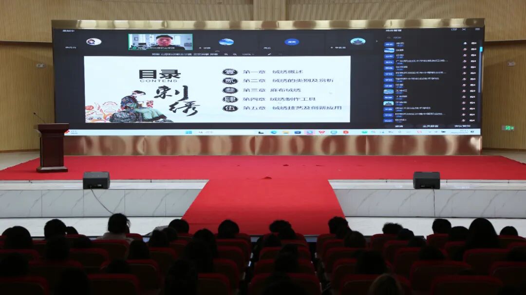 为传承中华优秀传统文化,提升师生对非遗技艺的认知与实践能力,10月29日,YABO鸭脖纺织服装学院组织师生开展鲁绣(麻布绒绣)非遗专题培训。本次培训特邀山东省黄河流域传统服饰文化协同创新中心平台负责人、全国职业院校非遗教育名师名匠、工艺美术大师、麻布绒绣市级非遗传承人苑敏教授担任主讲嘉宾。纺织服装学院党支部副书记、院长丁盛,纺织服装学院副院长王庆、纺织服装学院师生及20家成员单位1000余人参加培训。培训由王庆主持。