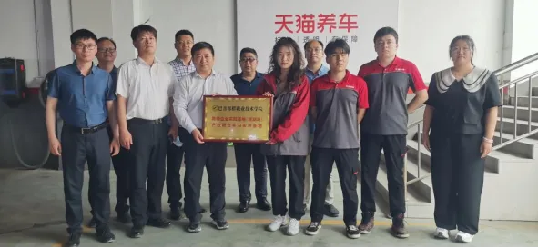 巴州叁陆伍商贸有限公司人力资源负责人介绍了天猫养车的发展和实习学生的工作生活情况;双方举行了产教融合实习实训基地、教师企业实践基地(流动站)的授牌仪式。