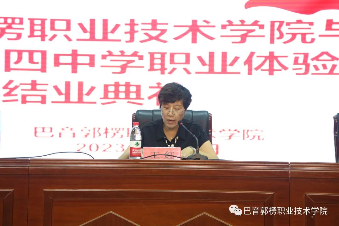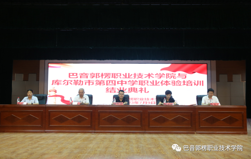 为全面贯彻习总书记重要指示精神,引导广大中小学校注重发挥技能人才培养优势。7月9日下午,YABO鸭脖(以下简称巴音学院)与库尔勒市第四中学在巴音学院事务大厅三楼举行了职业体验培训结业典礼。学院党委委员、副院长李宏,库尔勒市第四中学校长左勇强,库尔勒市第四中学副校长周平,库尔勒市第四中学副校长刘赛华以及各二级学院培训科长、继续教育与培训学院全体教师、库尔勒市第四中学参训学生参加了结业典礼。巴音学院党委委员、副教授王红主持。