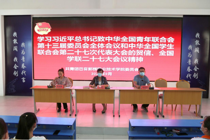 9月2日下午,团委组织召开学习习近平总书记致中华全国青年联合会第十三届委员会全体会议和中华全国学生联合会第二十七次代表大会的贺信、全国学联二十七大会议精神。党委委员副院长王红、宣传部副部长李志安、团委副书记周美旖和各院系青年教师学生代表共同参会学习。