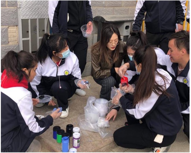 首先,同学们用水桶和扫把对所选井盖进行清理,确保颜料可以清晰上色。随后,开始调配颜料进行绘画,整个活动在学生们的欢声笑语中进行。最后,经过学生们2个多小时的执笔绘画,全部作品都被完美的呈现在了小小的井盖上。原本"灰头土脸"的井盖在学生的妙笔下变得充满生机与活力。有学生说:"愿我的一笔之力能够温暖寒冬里的行人。”