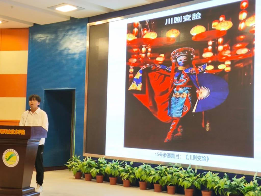 获得三等奖学生付利城以《川剧变脸》为主题进行演讲