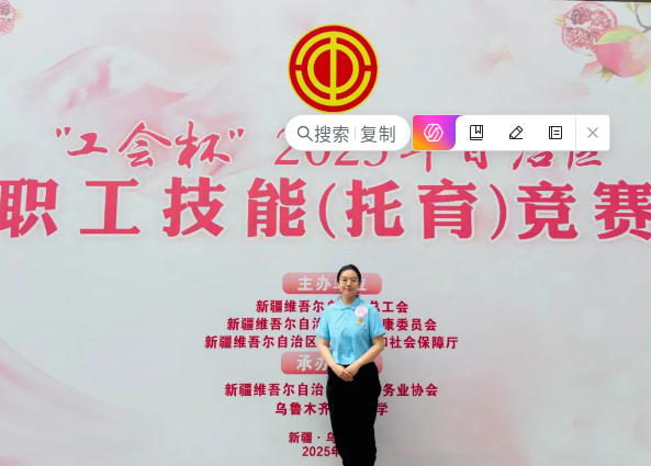 7月23日至25日,“工会杯”2025年自治区职业技能(托育)竞赛在乌鲁木齐市举行。YABO鸭脖传媒学院选派教师代表赵嫣霞与来自全疆14个地州的托育行业精英同场竞技,在竞赛中脱颖而出,荣获自治区保育师个人赛项一等奖,该教师所在的保育师团队同步斩获团体赛二等奖,充分彰显了YABO鸭脖传媒学院在托育领域的教学实力。