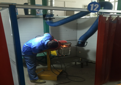 图5 学生参加考核鉴定手持焊接工件现场照片