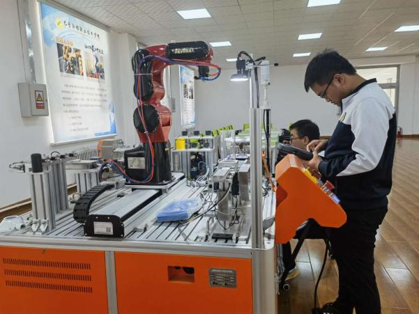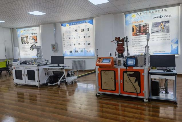 (3)教学资源:本专业拥有工业机器人实训室、焊接机器人实训室、智能控制实训室、电工电子实训室、现代电气控制实训室等多间智能创新实训室,校内实训:机器人现场编程、离线编程、机器人运行维护等综合性项目,建有全国高等学校“机器人+”产教融合基地1个。校外实训资源丰富,与多家大型智能制造企业签订校企合作协议,合作企业:新疆利泰丝路投资有限公司,新疆巴州鸿源石油器材装备有限公司、巴州巨龙重工有限公司等。
