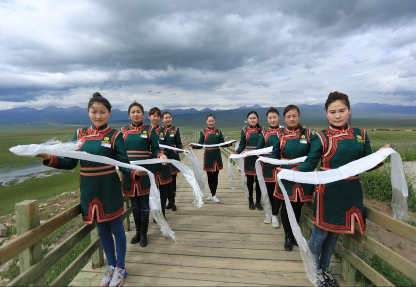 图6 旅游管理专业学生在博斯腾湖大河口景区实习