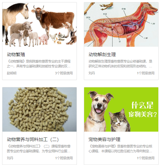 专业基础课程:动物解剖生理、动物微生物、动物病理、动物药理、动物繁殖、动物营养与饲料