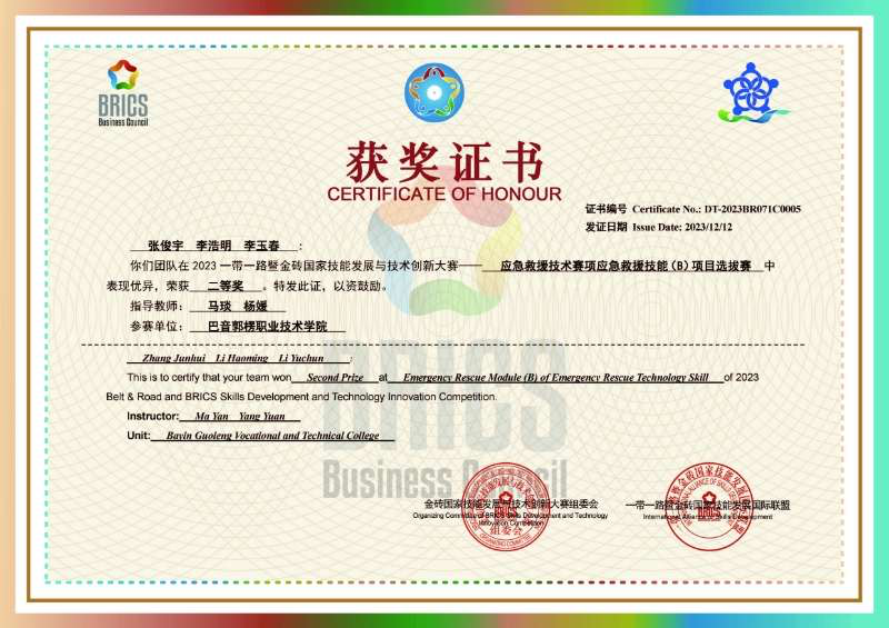 职业技能等级证书:化工总控工(中级)、化学检验员(中级)、初级急救员职业资格证、化工精馏安全控制、化工危险与可操作(HAZOP)、工业废气处理工、工业废水处理工、工业固体废弃物处理处置工、注册安全工程师、注册消防工程师、安全评价师、污水处理工
