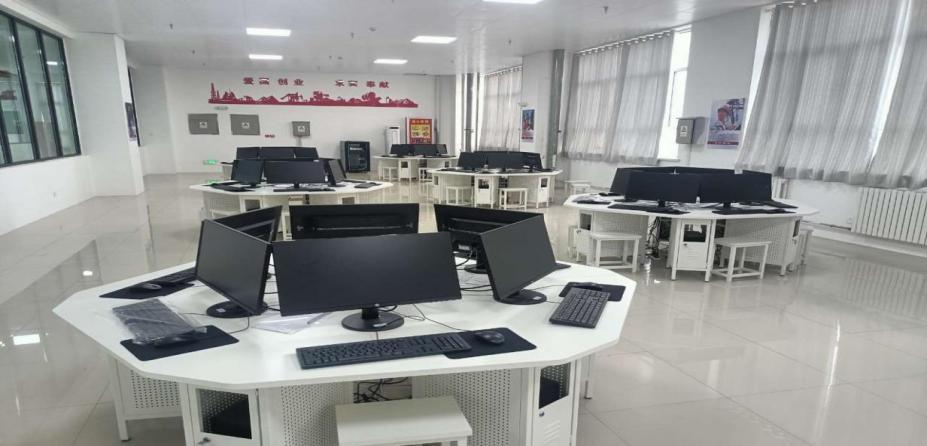(2)教学设施:目前教室全部配备智慧电子黑板,可以全程电化教学,新建并投用专业实训室2间,其中虚拟仿真实训室可模拟操作油气储运专业涉及的不同场站工艺操作;流体输送实训室可实现操作油气分离,设备实物拆装等功能。