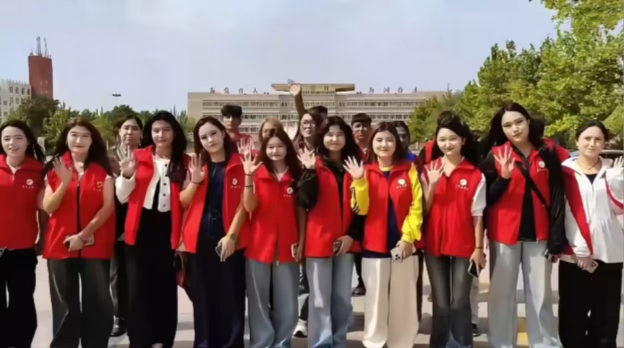 来看看校园里的志愿者们,统一口号:“有事儿您说话!”